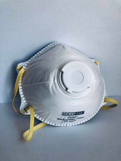 Clapeta de unica utilitate FFP1. Filtru alb HEPA si supapă respiratorie.